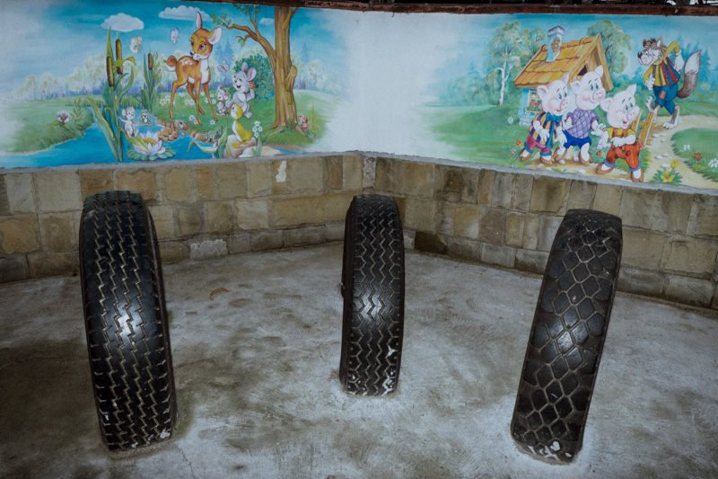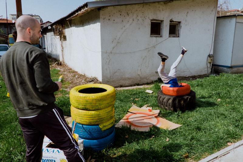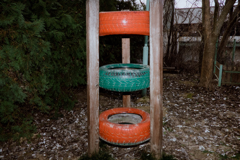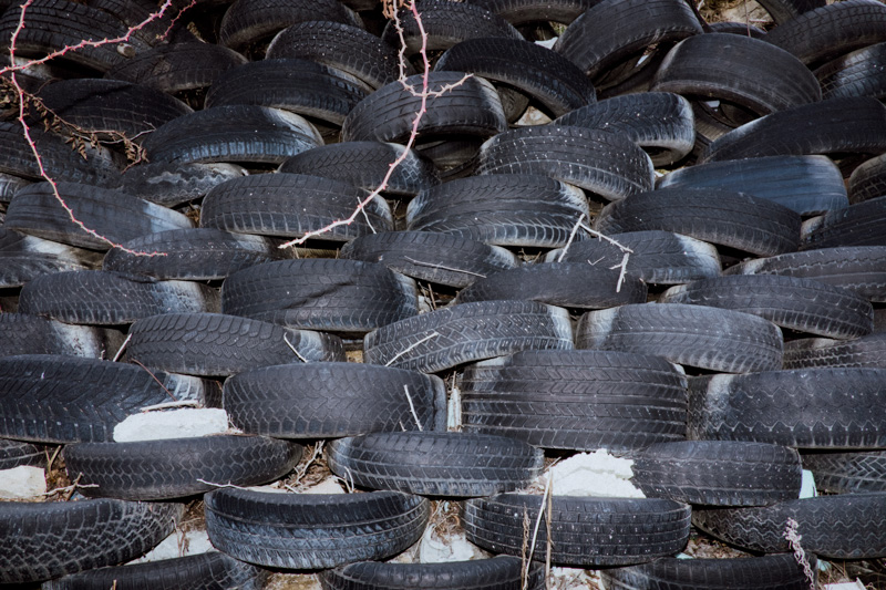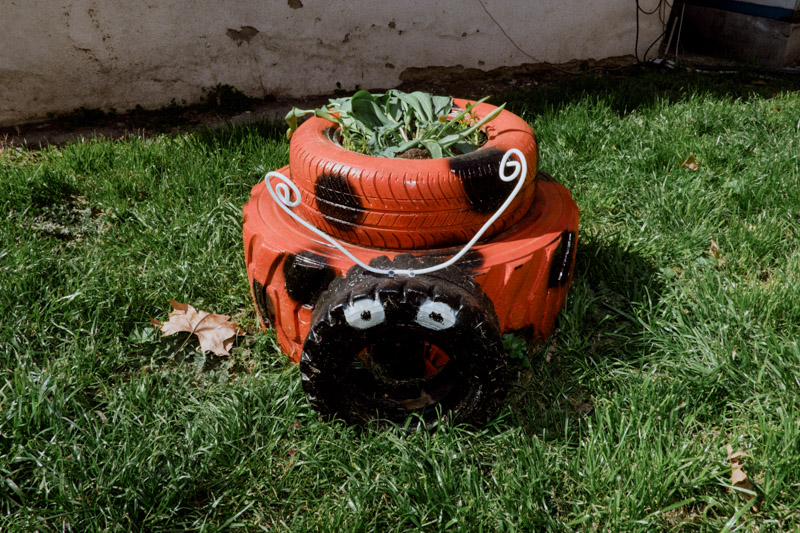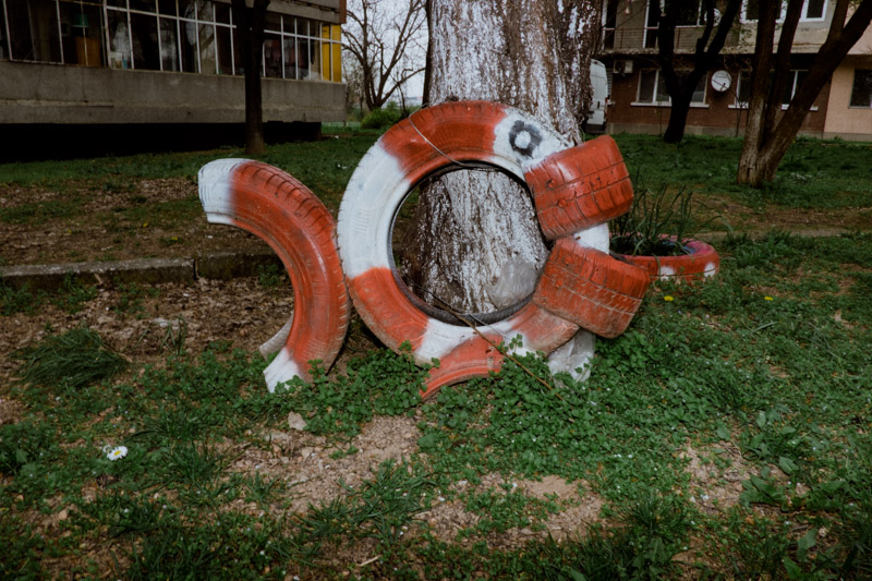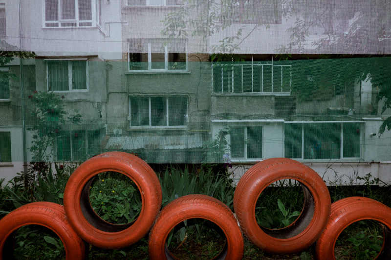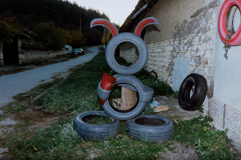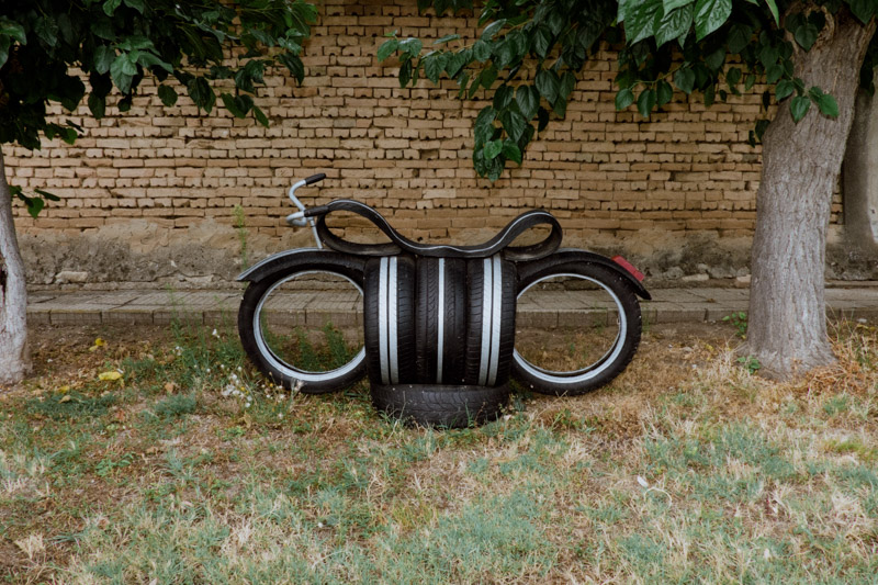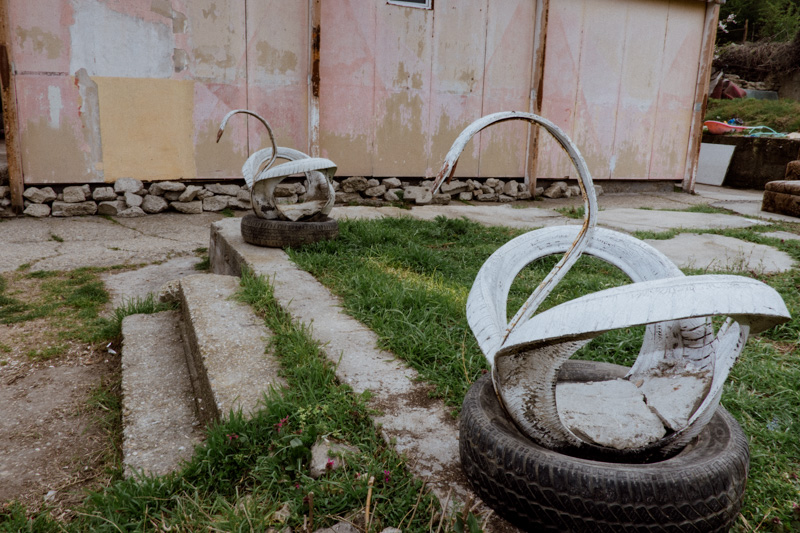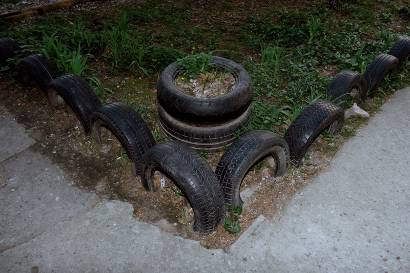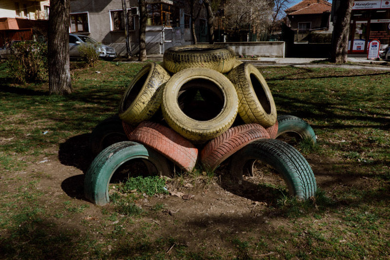 This work, depicting the repurposing of the mundane tyre, is a portraiture of skepticism towards the disposability of objects - an attitude deeply embedded in communities whichhave encountered prolonged periods of scarcity. The dance between the robust nature of the humble tyre, the ingenuity of humans and the pursuit of longevity has produced a means of architectural landscaping, play, andpolitical statement. The series is a tribute to the somewhat endearing long-lasting presence of these often comedic and slightly absurd objects in our urban landscapes.